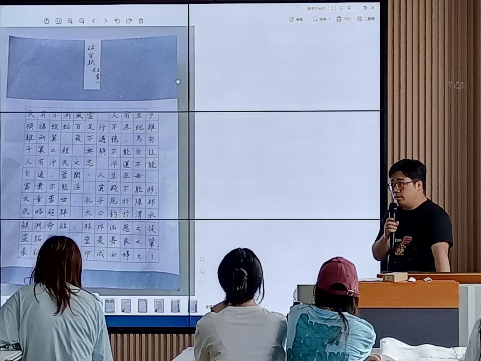比赛结束后,评委林澳和李鹏分别就选手的硬、软笔作品进行了详细而精彩的点评。两位专家提醒大家学习书写过程中的误区,并鼓励大家在今后的学习生活中勤学巧练,进一步提升书写水平和鉴赏素养。
