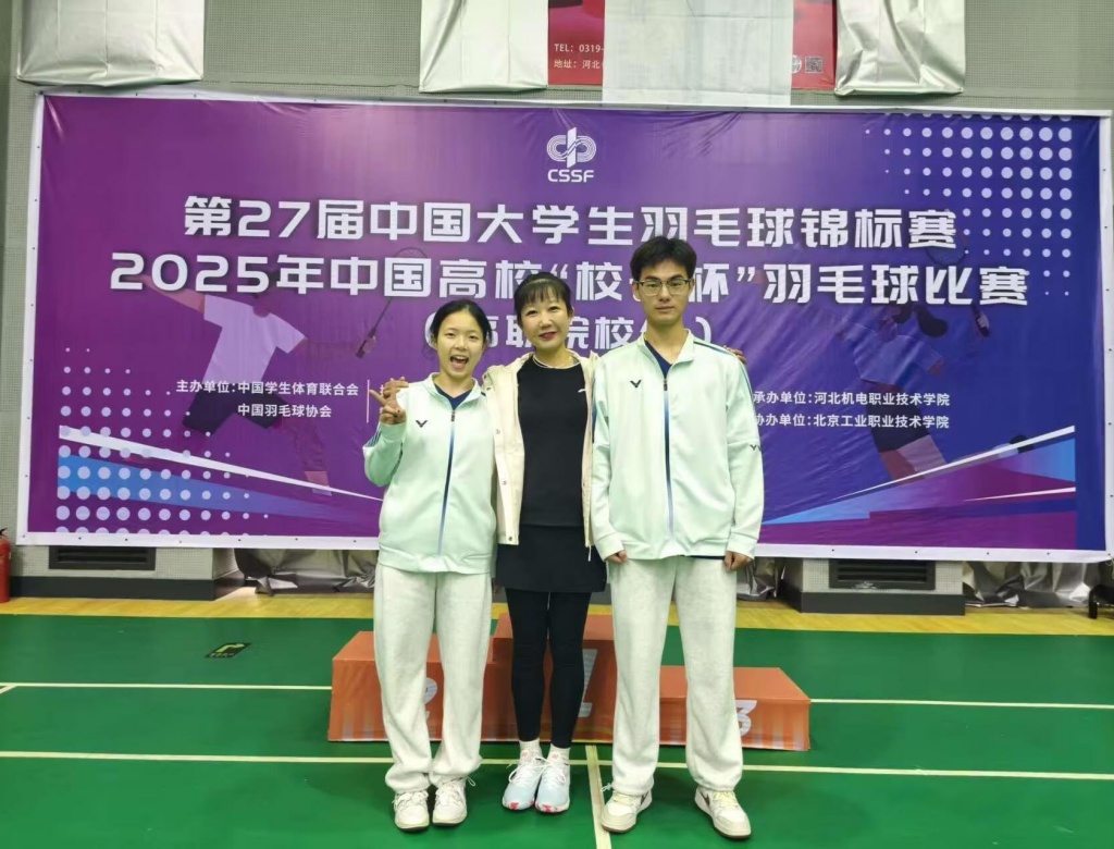 11月9日,第27届中国大学生羽毛球锦标赛暨2025年中国“校长杯”比赛在河北邢台圆满落幕。学校师生在此次比赛中团结协作、奋勇拼搏,取得了优异成绩,展现了积极进取、勇攀高峰的的生态风采。
